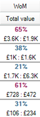 There are other numbers, functions and columns on the screen that display information or perform specific functions. In the middle of the rows is a percentage number, this number represents the weight of money in a market on the selection. If there is £2500 to back and £5000 to lay the weight of money will show 33%. This is indicating that there is more money on the lay side than the back side. If we assumed, theoretically, that money was arriving in the market at the same rate on both sides then would hypothesise that the back side would be ‘eaten’ through first. Therefore the price would likely come in and the price will get smaller. Therefore when this number is less than 50%, indicating more money on the lay than the back side it shows in blue. If the price is higher than 50% it will show in red indicating pressure on the price to drift.